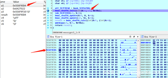 由于绿盟文章并未提到HMAC-SHA256算法用于计算“Integrity part”内容,其截图中给出的分析函数位置可作为参考,用于查找Session key计算的位置: