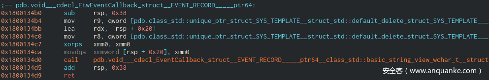 查看回调函数的反汇编代码,它看起来不像一个函数,而只是一个调用EventCallback的程序集。