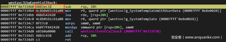 使用windbg工具进行更深入的分析后我发现这个回调函数是wevtsvc!EtwEventCallback