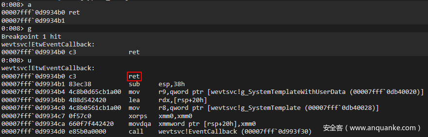 我们可以修改这个函数,在这里加一个ret指令。这个操作会阻止所有事件报告的产生。