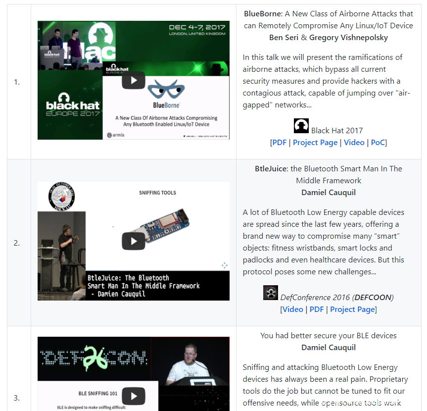 https://www.youtube.com/watch?v=uKqdb4lF0XU&list=LLxFkZjbpt0KyhEv1d342SQQ&index=6&t=91s - Bluetooth Reverse Engineering: Tools and Techniques
