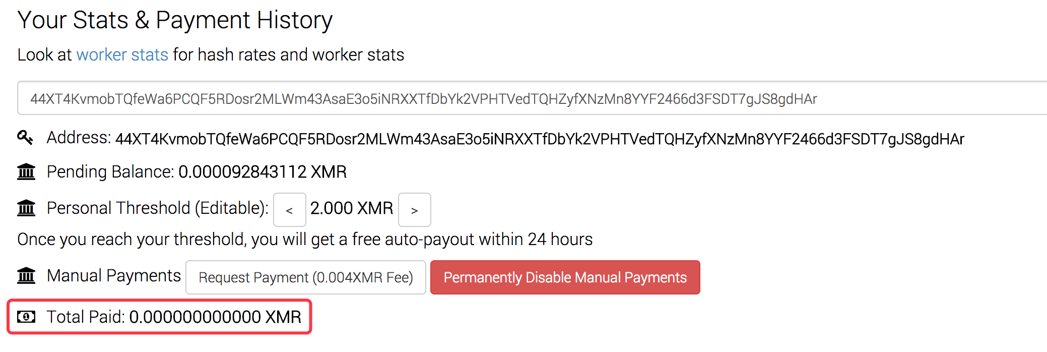 目前为止,上述钱包还没有收到矿池的第一笔付款: