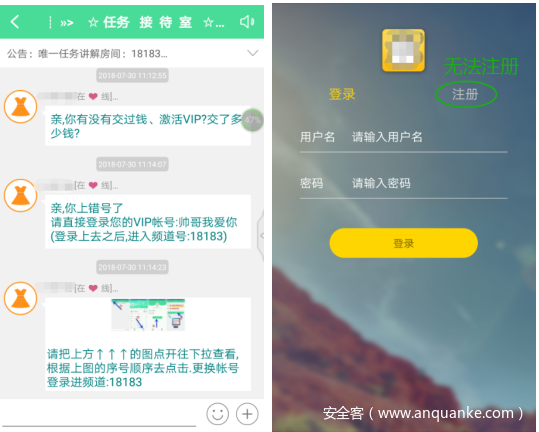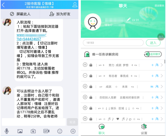 充值成为会员后,会被移入任务接待室,会员彼此之间无法交流,接待员会提供任务App的下载方式和登录账号,且该任务App只能用于账号登录,无法注册。
