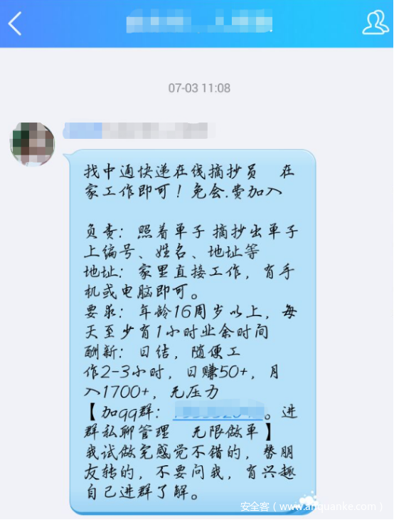 QQ作为一种可信度相对较高的社交圈,通过QQ传播扩散,无形中会加强消息的可信度,诱导用户身边更多的人加入。这就能解释为什么许多QQ群里常见到兼职刷单广告!