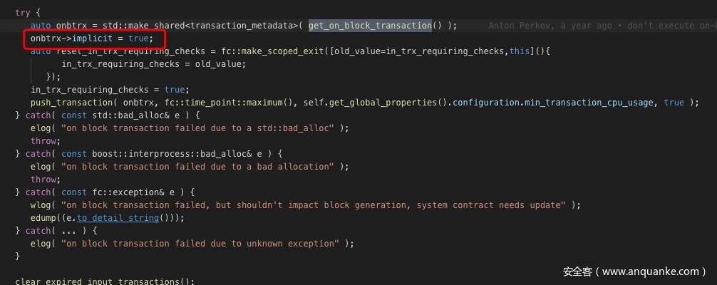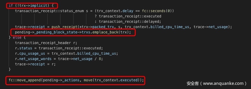 发现一个点,就是这里会把 onblock 交易的 implict 设置为 true,这样设置有什么用效果呢? 我们接下来看下交易的打包过程