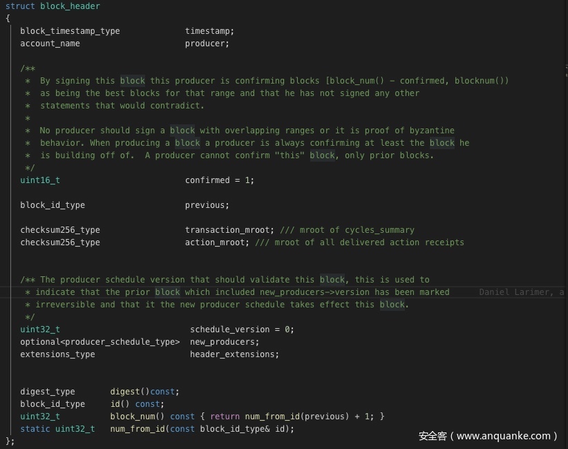 通过上图我们可以看到,区块哈希的计算最终调用了 digest() 方法,而 digest() 方法的实现为对 block_header 结构体本身进行哈希。我们继续看 block_header 的定义