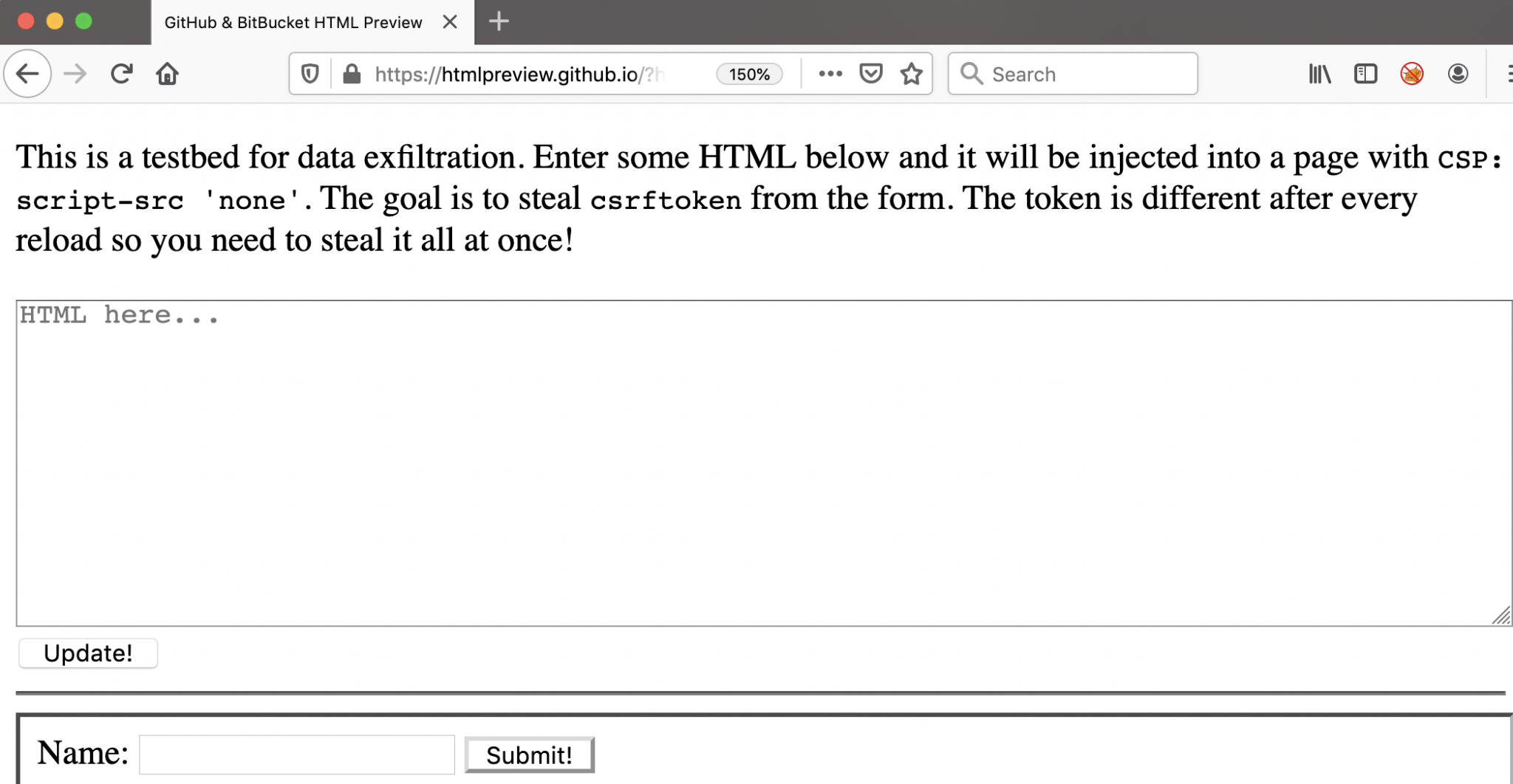 为了演示方便,这里假设我们想窃取<input>元素中的CSRF令牌。