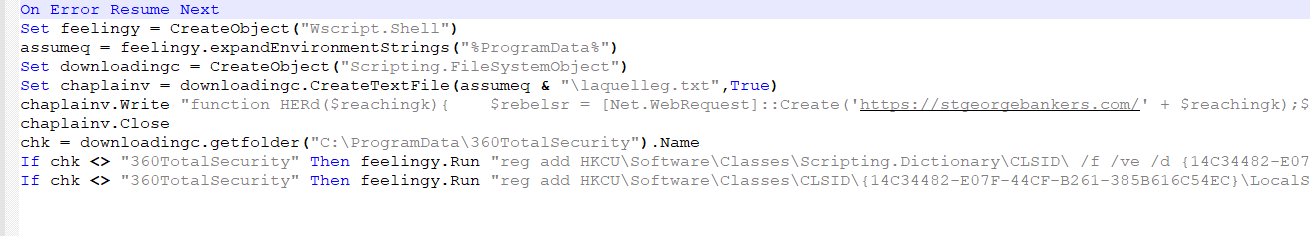 - 宏代码执行后的下一阶段,攻击使用 VBScript、PowerShell、VBA 作为后门的编写语言,并且最新的攻击中加入了检测杀软的代码逻辑;