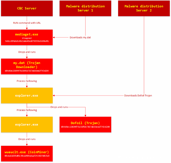 攻击者在3月1日开始运行首批测试,使用该后门将恶意软件植入用户计算机并在3月6日发动主要攻击,当时他们传播的是 Dofoil 和密币恶意软件组合。