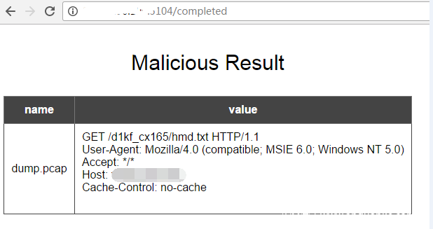 目前还实现了一个简易的测试页面,可以通过上传pcap来检测其中是否包含恶意流量,效果如图5.3和5.4所示。该页面后续将开放。表5.1 不同训练集占比下的检出率和误报率
