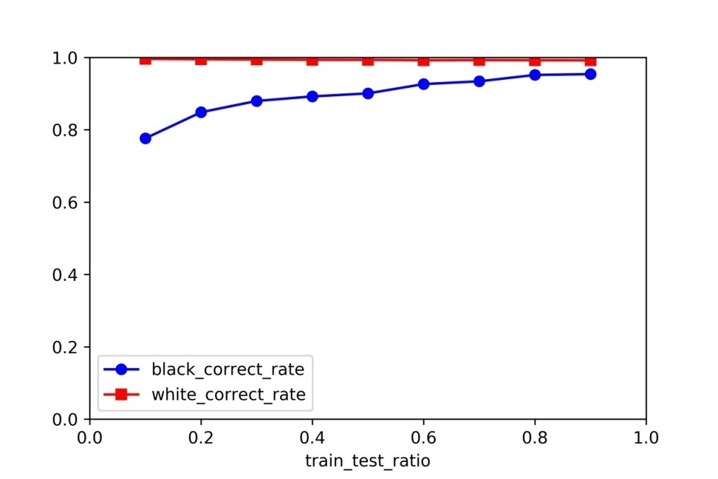 此外,分别用10%,20%,30%…, 90%的黑样本作为训练集,匹配阈值采用0.8测试其他样本数据,分别统计检测的恶意流量正确率,白流量正确率以及误报率,结果如图5.2。可以看到算法对白样本的检测正确率一直维持在99%以上。而对于黑样本,其检测正确率是建立在模型多样性的基础上的。在训练集只有10%,模型数据不足的情况下,算法仍检测出了77.65%的黑样本,说明算法对于恶意流量的变种有较好的泛化能力。
