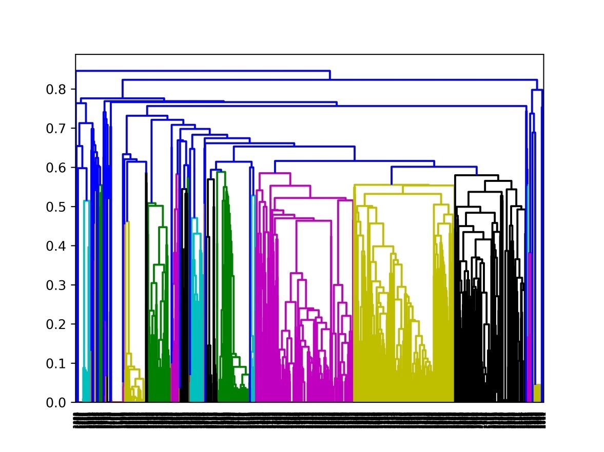 根据步骤3计算的相似度矩阵,利用层次聚类算法将请求头划分为若干类。每一类中的请求头都具有相似的结构,用于后续生产恶意流量模板。图4.5是采用10%的样本用于训练时生成的层次聚类图。