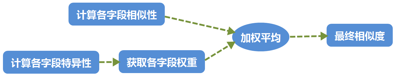 为了更好的决定各个字段在相似度中应该占有的权重,需评估每个字段的特异性,字段内容特异性越高,则其恶意特征越明显,相应的就应该赋予更高权重。图4.3给出了相似度计算的具体过程。