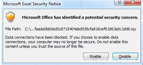 通过启用此数据连接,用户允许Excel从.iqy文件中的URL里获取内容。
