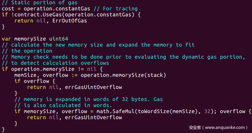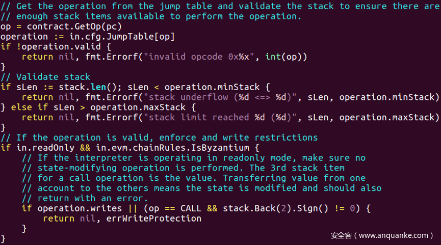 EVM在执行合约时,会一步一步提取其中的OPCode,并做相对应的检查: