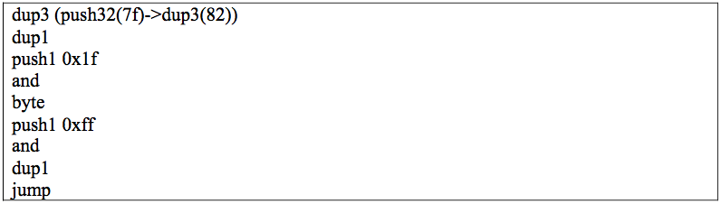 可能会注意到的另一个事情是在最近的‘jumpdest’和‘log’之间,存在一些修改栈内容的操作,因此我们需要利用其他gadgets大概准备一下stack的内容。