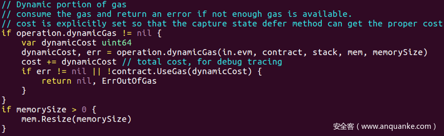 计算OPCode需要的内存大小,并根据目前的内存情况决定如何收取gas费用并扩容内存。