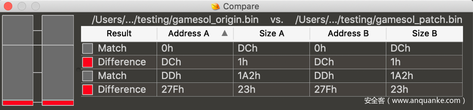 如上,第一处diff是1字节,第二处是metadata,这个理论上来说对不同源码是应该不一样的(但这里是题目有意设置的不同)。