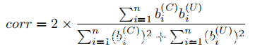 关联归一化流量形状:基于形状的检测器将目标频道C和用户U的两个流量流的归一化形状关联起来,以确定它们是否相关。假设b(C)和b(U)是与目标频道和被测试用户相关联的bin高度的相应向量,其中nC和nU分别是目标频道和用户流中的事件数。使用以下归一化相关度量:
