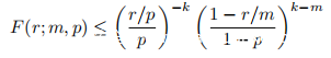 其中F(r; m,p)= P(X≤r)是具有参数m,p的二项式分布的累积密度函数,最后一步来自以下不等式,当p接近于零时,该不等式是紧密的: