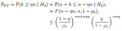 分析界限:首先得出假阳性概率(PFP)的上限,即当H0为真(I类错误)时检测到H1的概率。当H0为真时,f(C)中少于n-η·n个事件与f(U)不匹配。所以,