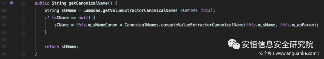 跟进 sCName 的赋值过程 this.getCanonicalName() ,因为this对象的原因,Lambdas.getValueExtractorCanonicalName 无论如何都会返回null。