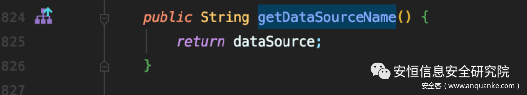 getDataSourceName() 调用的是父类 javax.sql.rowset.BaseRowSet 的,其 dataSource 属性是可序列化的,因此我们可以控制 this.getDataSourceName() 的返回值。