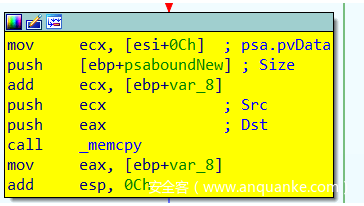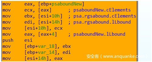 SafeArrayRedim函数在未重新分配空间之前便将psaboundNew写入psa.rgsabound,用以传递给SafeArraySize函数计算调整数组元素大小 -
