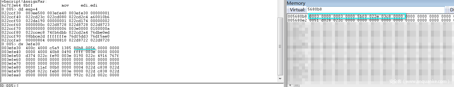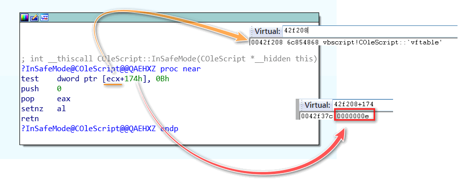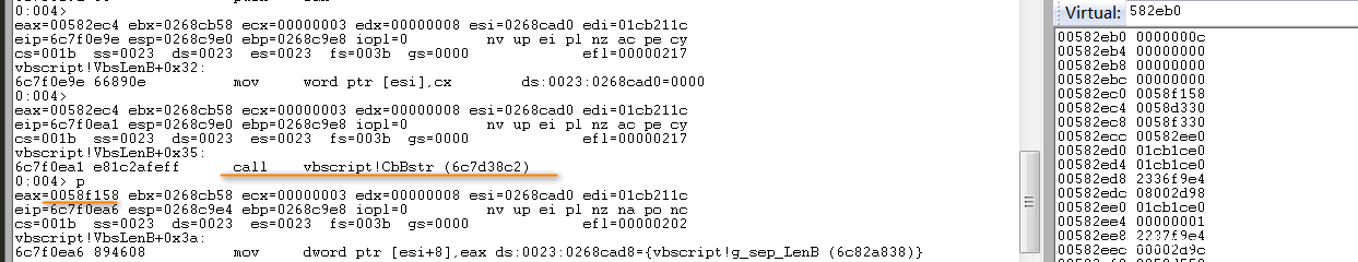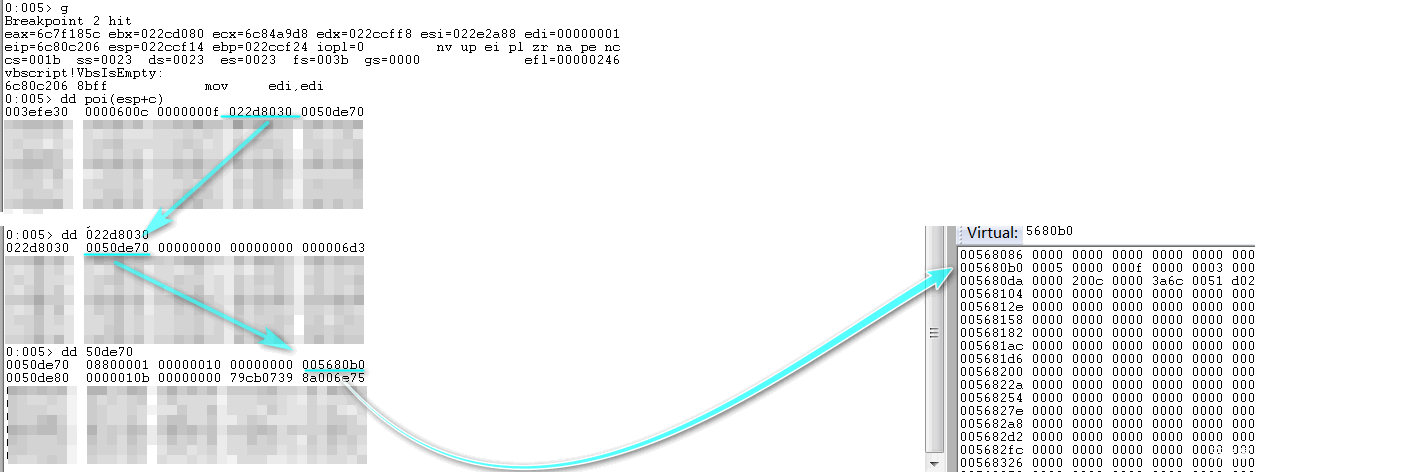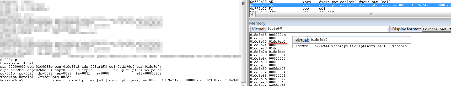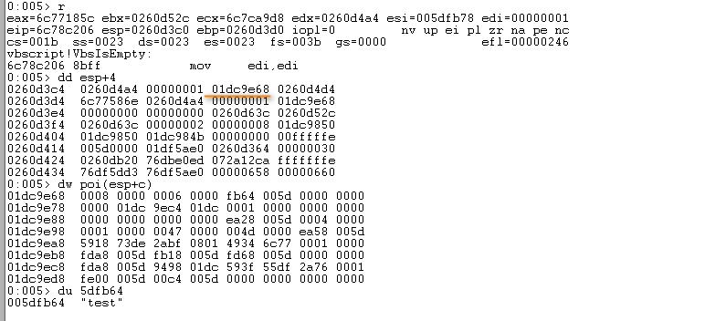 关于此处的调试可于vbscript!VbsIsEmpty函数设断,配合如下修改: