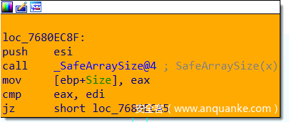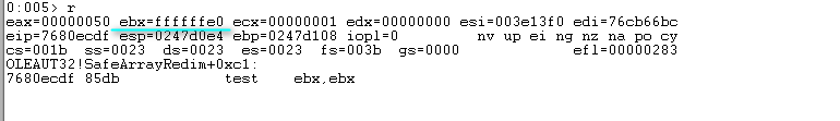 执行到call oleaut32.dll!SafeArrayRedim处,跟进分析: