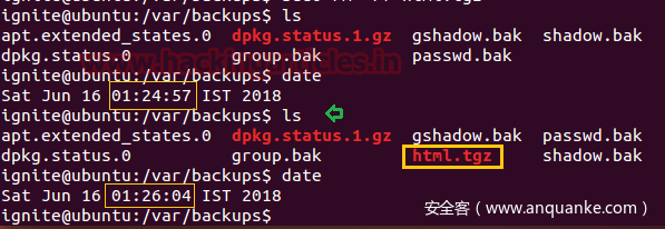 现在,在crontab的帮助下安排一个任务,运行tar档案程序,以每1分钟备份一次/html文件夹到/var/backups。