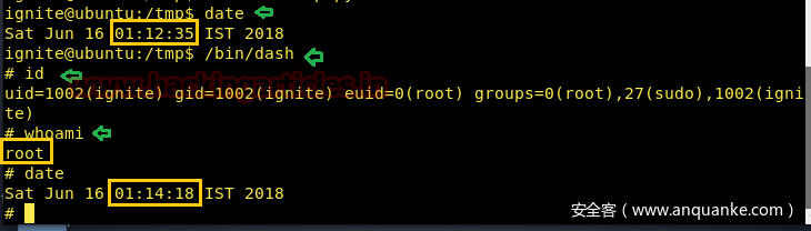 两分钟后,它将为/bin/dash设置SUID权限。当你运行它时,它将给予root访问权限。