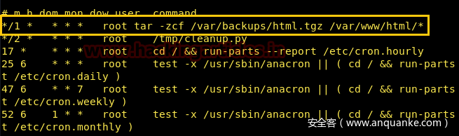目标:在crontab的帮助下安排一个任务,用HTML目录下的tar存档程序进行备份。