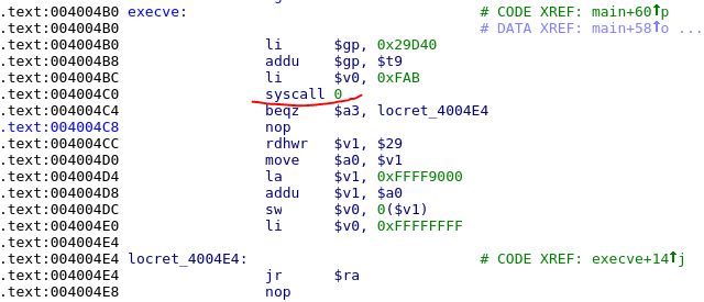 前面我们提到,最终execve是通过syscall这个命令实现的系统调用,因此,基于MIPS的shellcode编写,大部分都是基于syscall这个命令的。