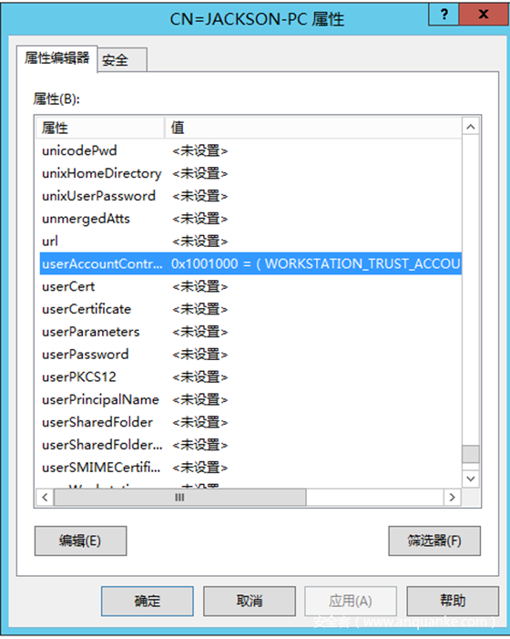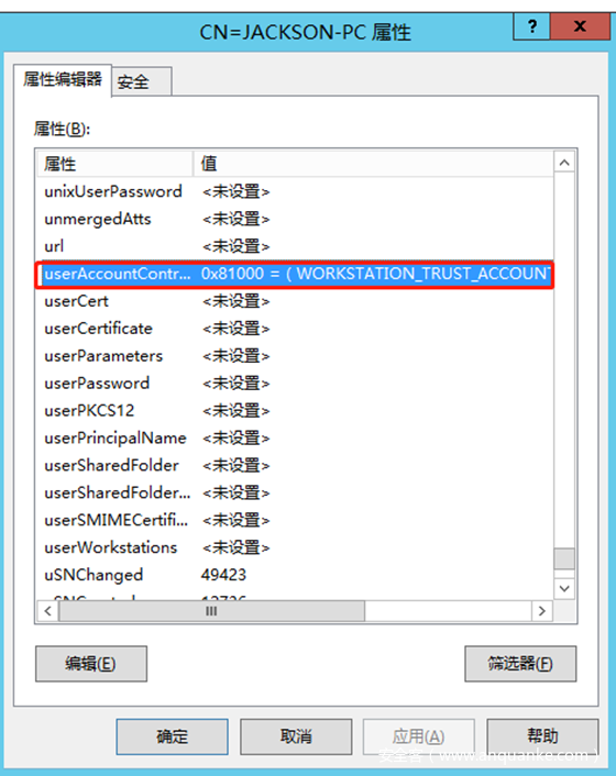 关于userAccountControl 每一位对应的意义可以看Converting AD UserAccountControl Attribute Values,(我们在LDAP篇也会详细介绍),其中 TRUSTEDFORDELEGATION 对应是 0x80000 ,也就是 524288 。