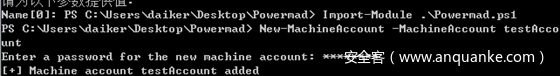Powermad包括一组用于利用ms-DS-MachineAccountQuota的功能,而无需将实际系统附加到AD。