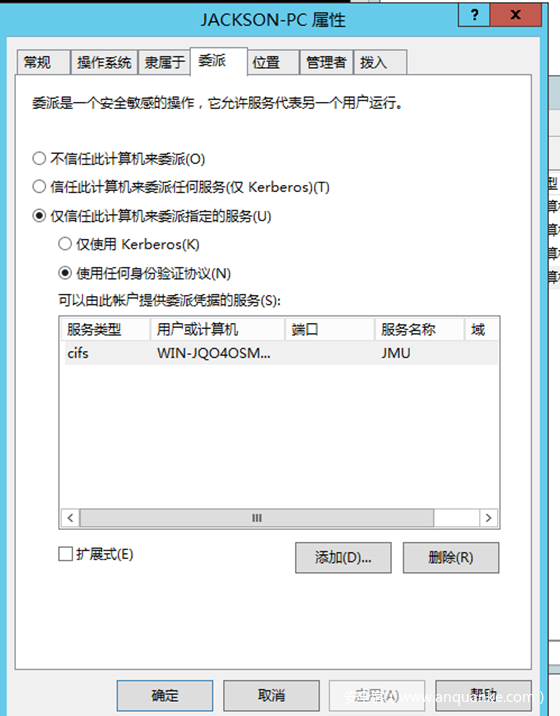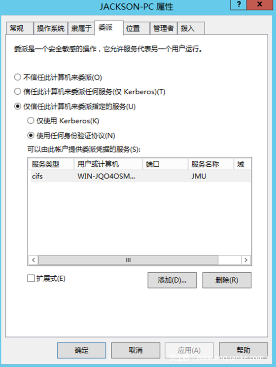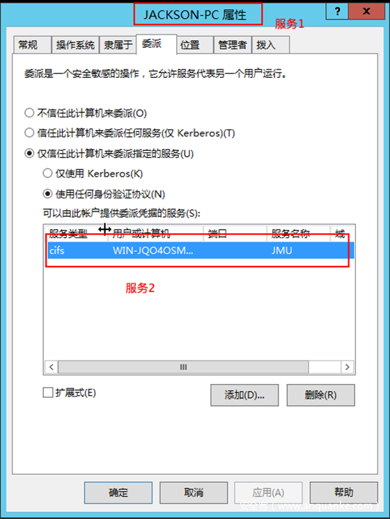 (2) 服务配置了约束委派