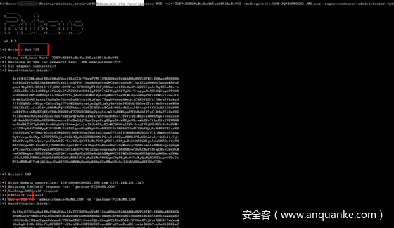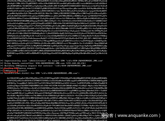约束委派的安全问题就是如果我们找到配置了约束委派的服务账号,比如这里面的JACKSON-PC$,并且通过一定手段拿下该账号所在的机子。我们就可以利用这个服务账号代表任意用户(这里面很重要的一点是服务代表用户获得针对服务自身的kerberos票据这个过程,服务是不需要用户的凭据的)进行s4u2self获得一个可转发的票据,然后把获取到的票据用于s4u2proxy(作为AddtionTicket),从未获取一个可转发的TGS,服务就可以代替任意用户访问另外一个服务(既被配置的约束委派的服务,这里面就是cifs/WIN-JQO4OSMOGK2.JMU.com)。
