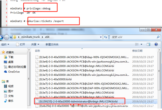 (3) 在jackson-PC使用mimikatz 导出域管的TGT(因为要从lsass里面导出来,所以需要本机管理员的权限)