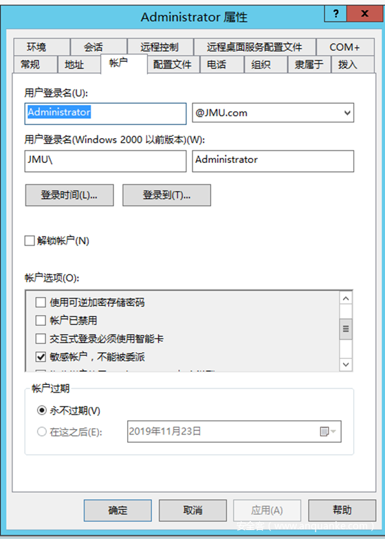 需要注意的是,如果用户的UserAccountControl字段中设置了USERNOTDELEGATED位,那么返回的TGS是永远也没法转发的。如图,当Administrator配置了敏感账户,不能被委派,返回的TGS的flag字段没有forwardable。