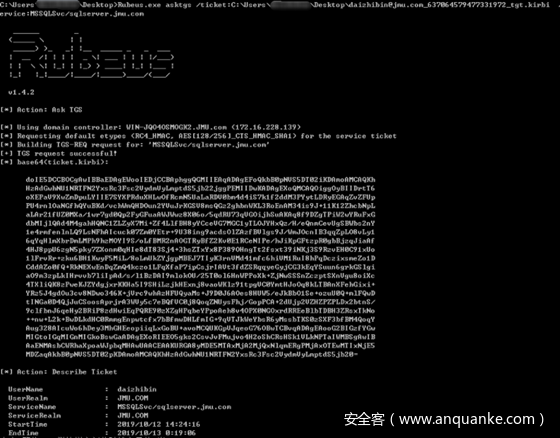 这个功能用于发送tgs请求包,并将凭据以base64打印出来。