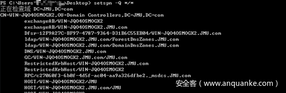 用系统内置的工具setspn提取出所有的spn