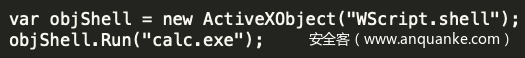 除了宏之外,CylancePROTECT也能阻止Windows Script Host文件运行(特别是VBScript及JavaScript文件)。因此,当我们尝试在.js或者.vbs文件中使用WScript.Shell运行脚本时,由于启动了ActiveScript防护,Cylance会阻止这种行为,如下所示: