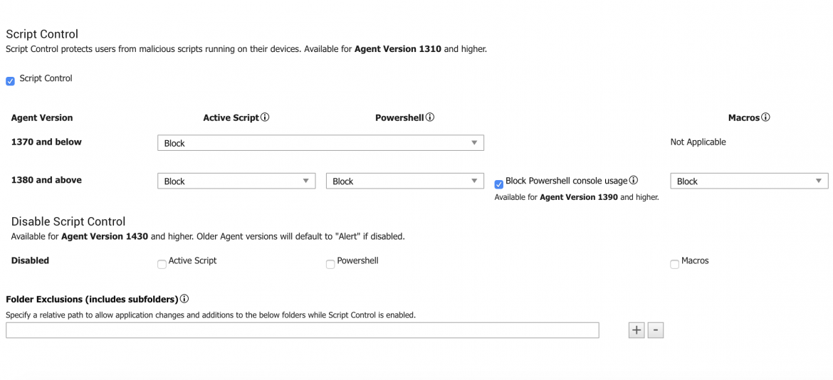 - 脚本控制:配置该选项以便阻止Active Script(VBS及JS)、PowerShell以及Office宏。