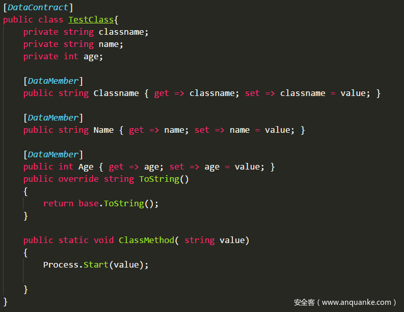 定义了三个成员,并实现了一个静态方法ClassMethod启动进程。 序列化通过创建对象实例分别给成员赋值