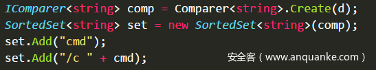 使用Comparer<T>的静态方法Create创建比较器,比较器对象在.NET集合类中使用的频率较多,也具备了定制的反序列化功能,这里选择SortedSet<T>类,在反序列化的时内部Comparer对象重构了集合的排序。