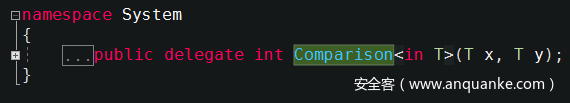 多路广播委托(MulticastDelegate)继承自 Delegate,其调用列表中可以拥有多个元素的委托,实际上所有委托类型都派生自MulticastDelegate。MulticastDelegate类的_invocationList字段在构造委托链时会引用委托数组,但为了取得对委托链更多的控制就得使用GetInvocationList方法,它是具有一个带有链接的委托列表,在对委托实例进行调用的时候,将按列表中的委托顺序进行同步调用,那么如何将calc.exe添加到GetInvocationList列表方法?首先先看Comparison<T>类,它用于位于命令空间System.Collections.Generic,定义如下