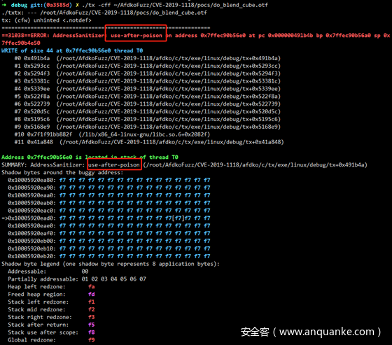 但是PJ0给的例子中,存在了一个叫做redzone patch的操作,打完patch之后会出现user-after-poison的错误。
